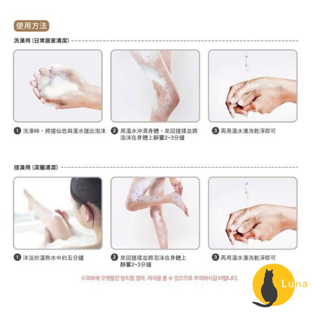 ♥清除污垢和老廢角質時,可搭配澡巾搓揉沾取搓仙皂,擦拭全身