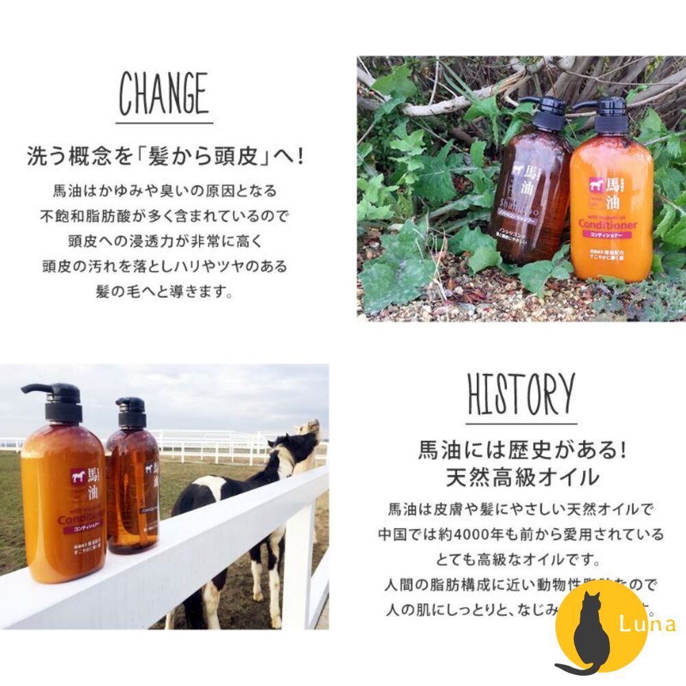 全成份:WATER、SODIUM LAURETH SULFATE、COCAMIDE DEA、SODIUM CHLORIDE、COCAMIDOPROPYL BETAINE、HORSE FAT (HORSE OIL)、CAMELLIA JAPONICA SEED OIL、GLYCERIN、PROPYLENE GLYCOL、POLYQUATERNIUM-10、TETRASODIUM EDTA、CITRIC ACID、SODIUM HYALURONATE、HYDROLYZED SILK、CETYL-PG HYDROXYETHYL PALMITAMIDE、ARGININE、ALCOHOL DENAT、BUTYLENE GLYCOL、SODIUM BENZOATE、FRAGRANCE。