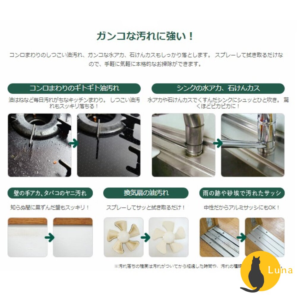 ●對付難纏污垢、水垢、油垢、手痕,擁有高效清潔力
