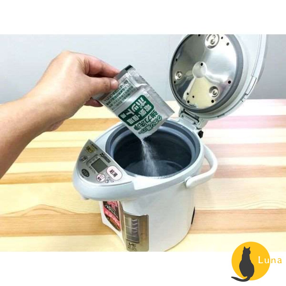 1. 將水注入滿水位線並加熱至40度以上(電熱水瓶需拔除插頭),倒入清潔劑後蓋上蓋子(1.5L用1包)。