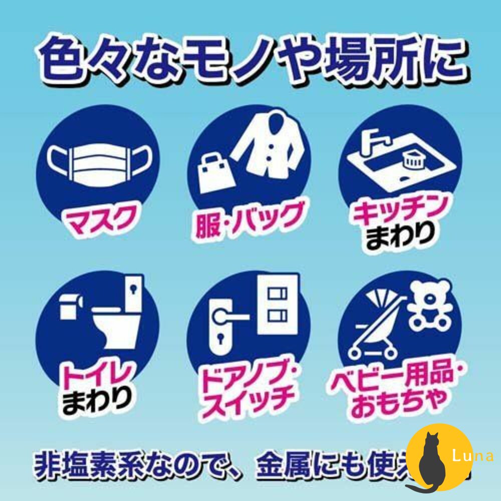★使用場所及物品:衣物、包包、織品、廚房流理台周圍、烹飪用具、餐桌椅、馬桶坐墊、浴室門把手、電源開關、嬰兒車、嬰兒座椅、玩具...等