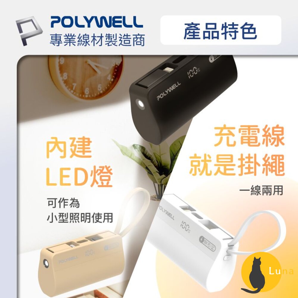 ♥【自帶USB-C充電線】自帶Type-C充電線,可充iPhone15/安卓手機,同一根線也可以用來回充行動電源