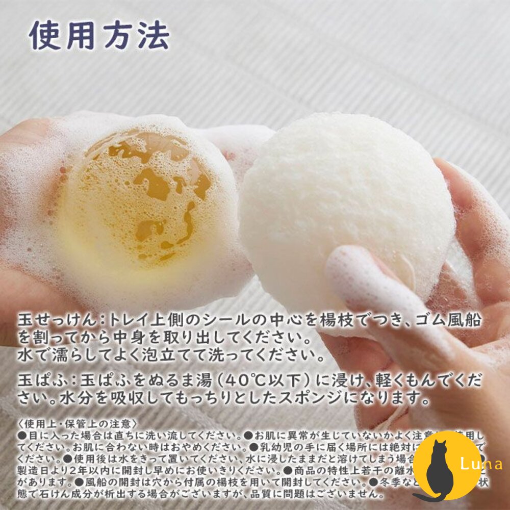 <潔顏球>撕開球體中間貼紙,使用牙籤刺入,小心地取出潔顏球。用水沾濕後溫柔起泡,輕輕按摩肌膚,再以清水沖洗。