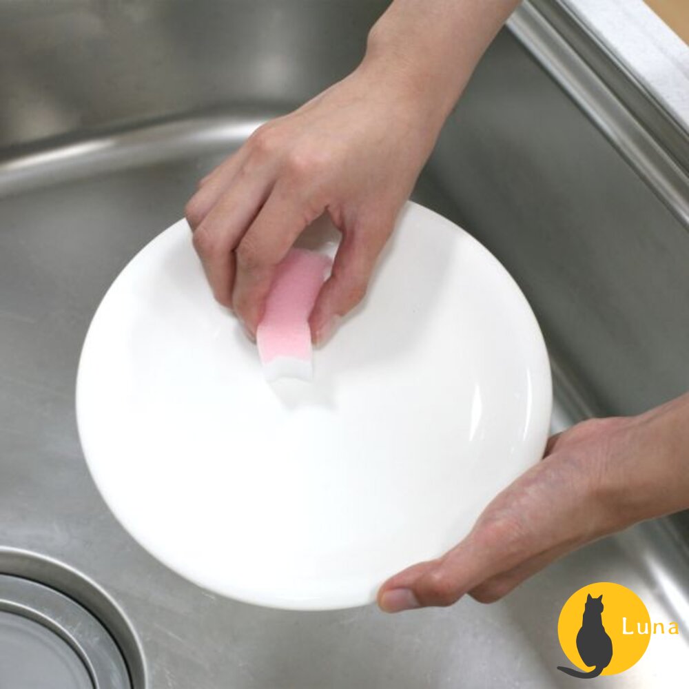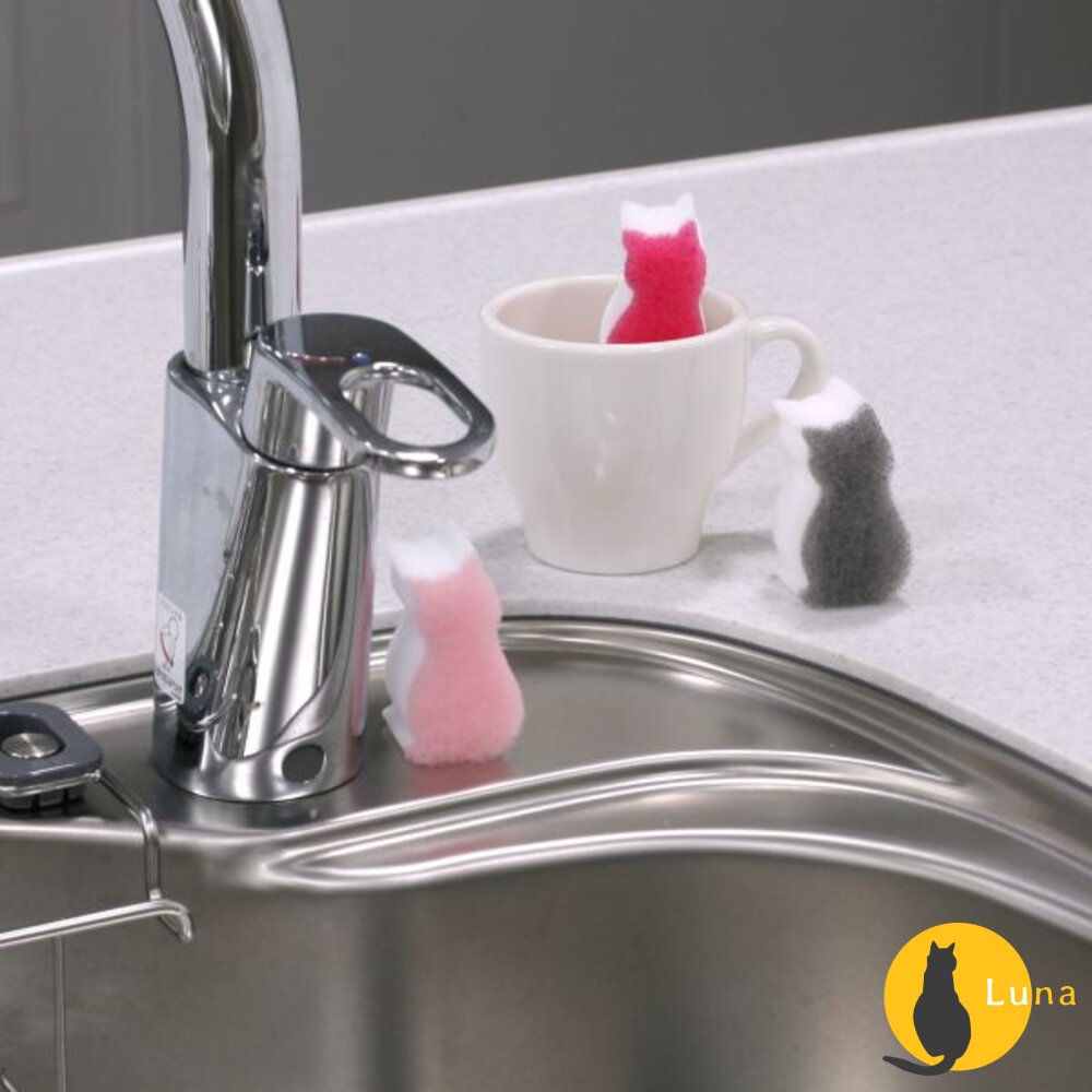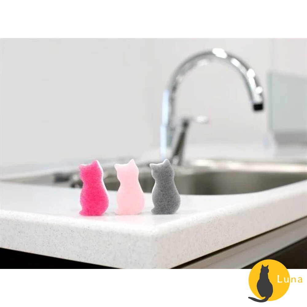 ♥ 可愛的貓咪造型海綿,一面是不使用研磨劑的柔軟不織布製成,一面是僅用水即可去除污垢的科技海綿。
