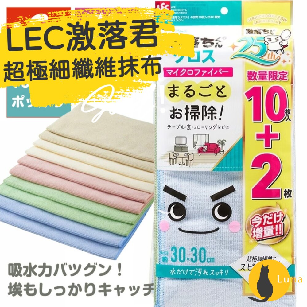 【LEC激落君 超極細纖維吸水抹布10+2條/包】