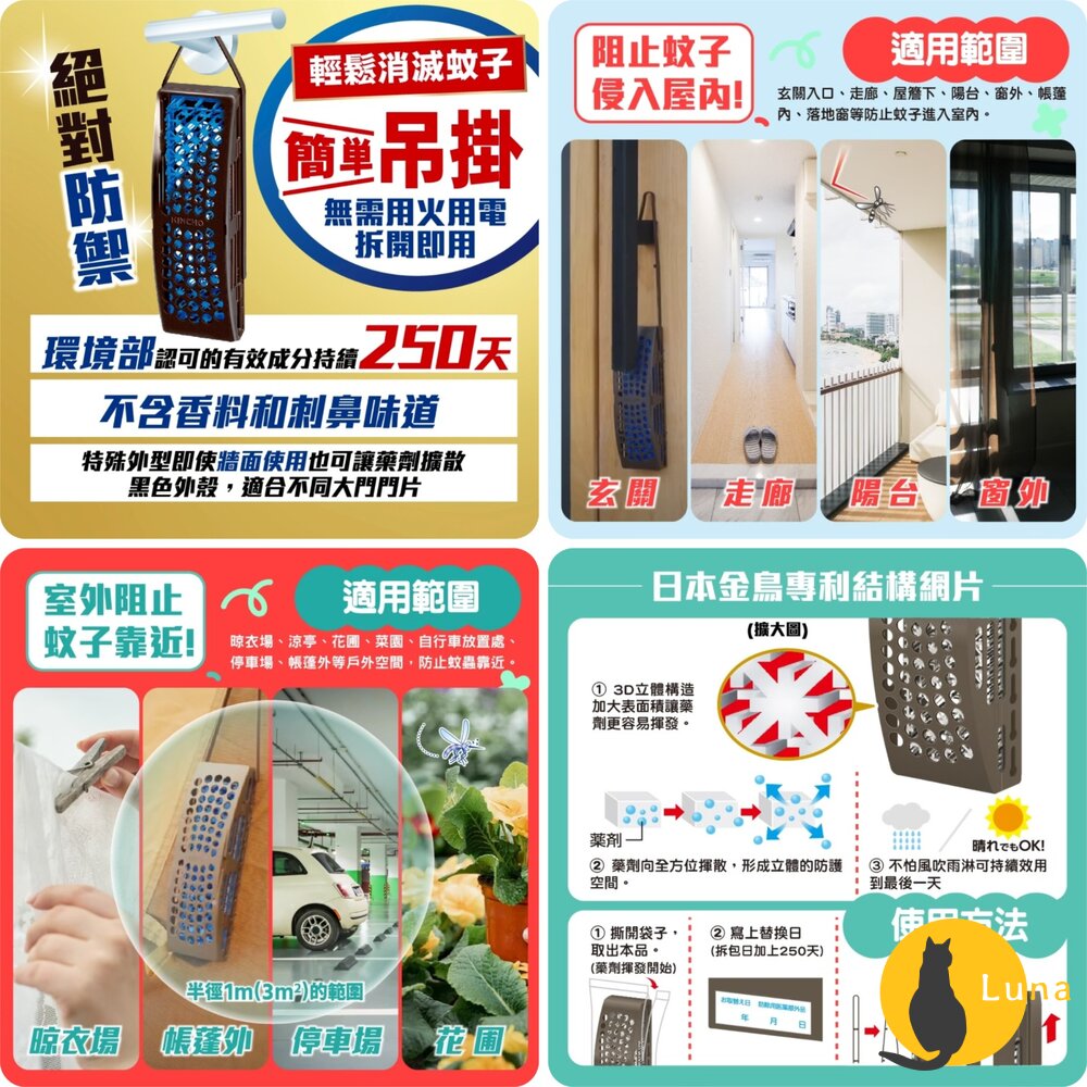 ✅ 金鳥是業界唯一擁有將藥劑與塑膠網混煉的技術,讓本商品能徹底發揮約250天效果。