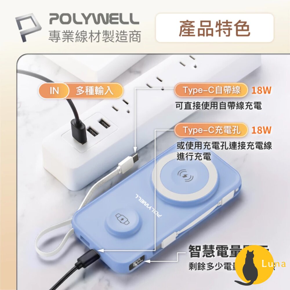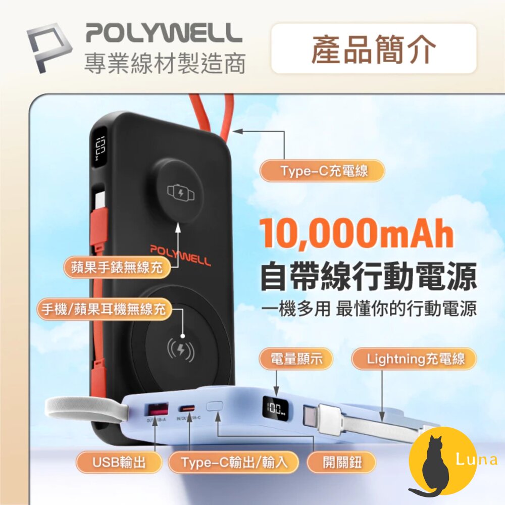 🌟多合一磁吸無線充+自帶線快充行動電源 10000mAh🌟