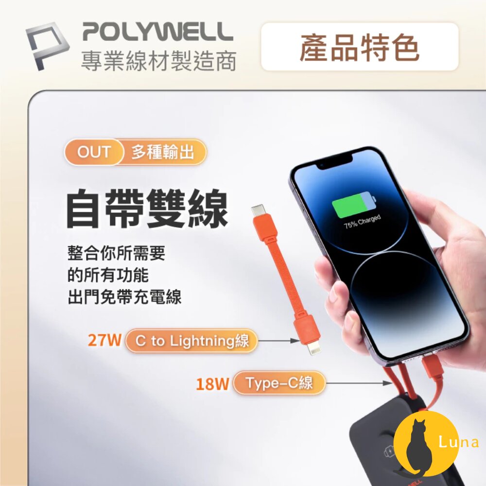 ♥【自帶雙充電線】自帶2種充電頭/充電線:Type-C, Lightning,出門可以少帶充電線
