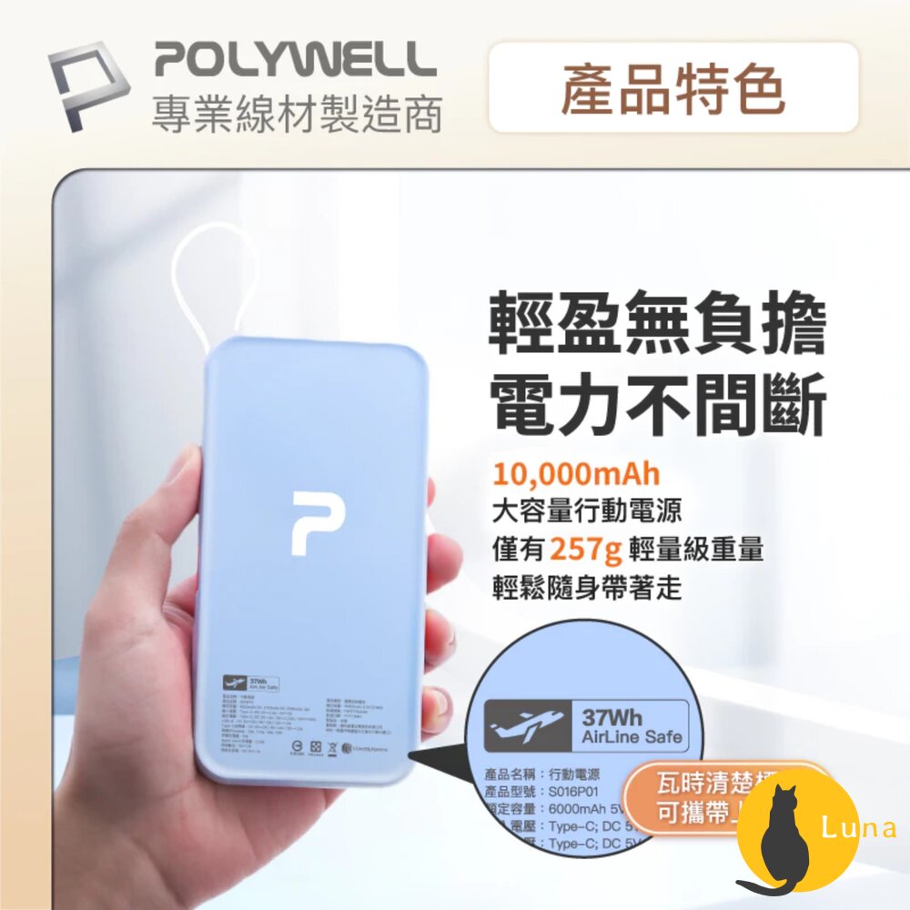 ♥【10000mAh容量】電池容量(37Wh)可帶上飛機,也足夠外出一整天的行程使用 (iPhone15 Pro可充約1.7次)