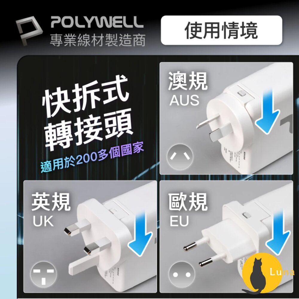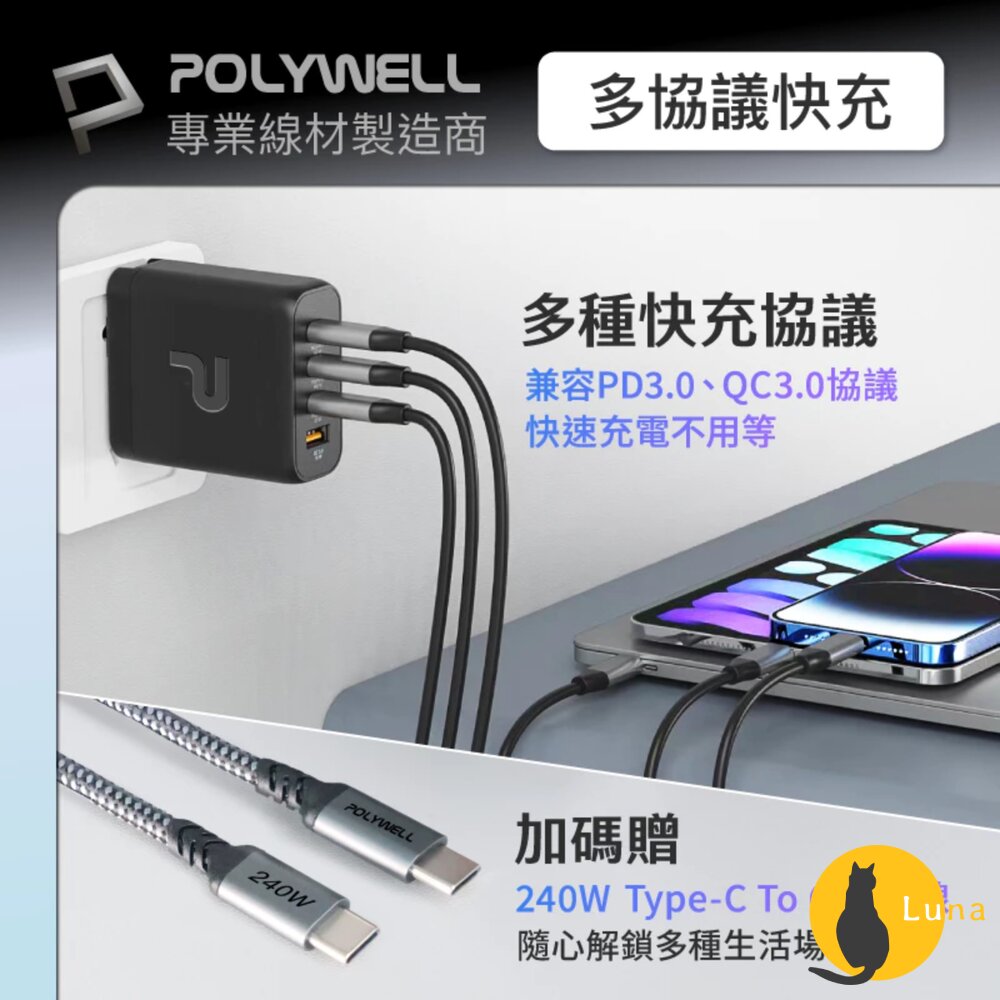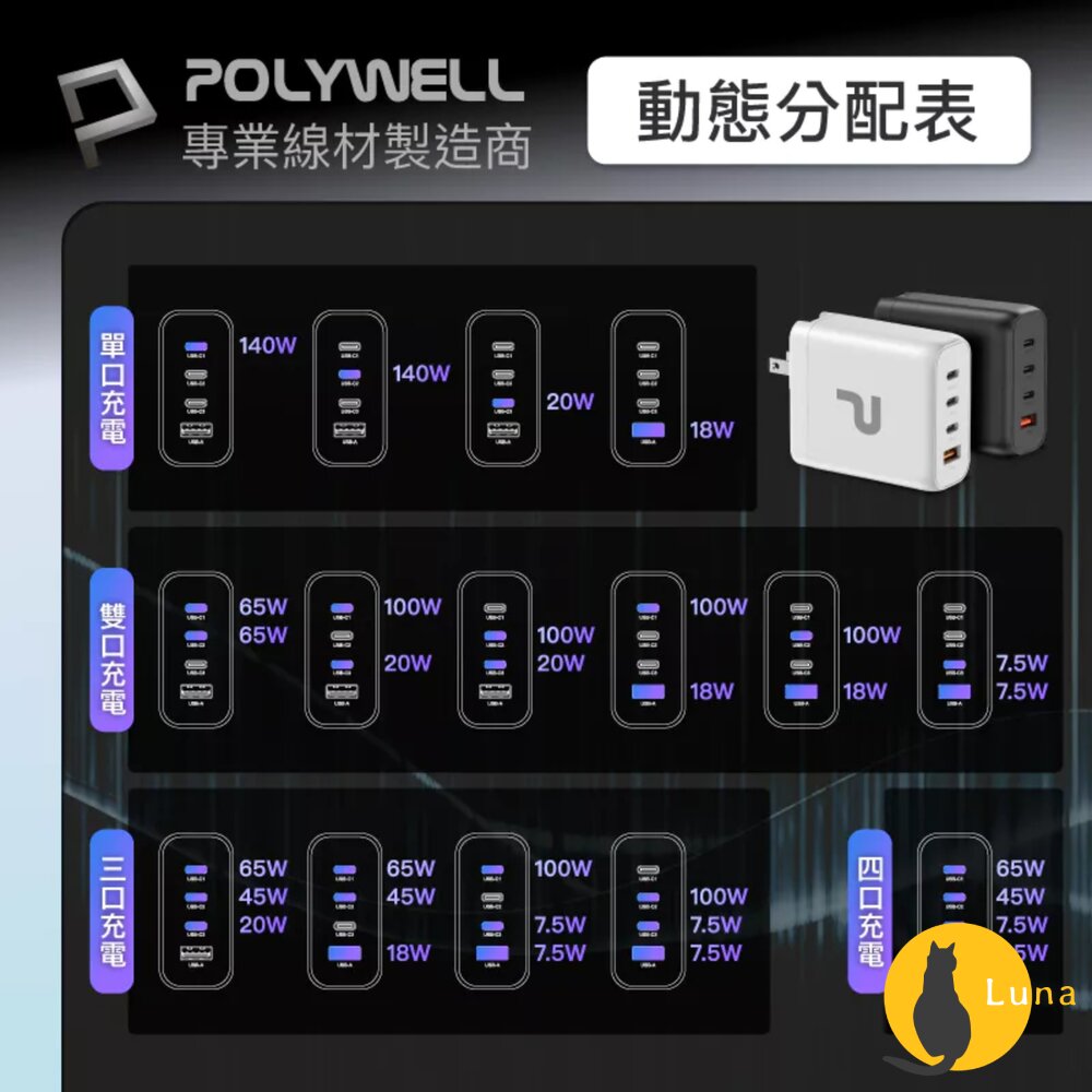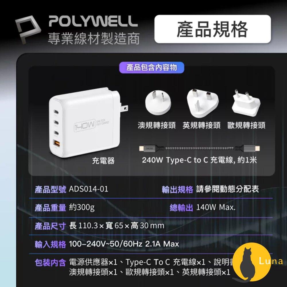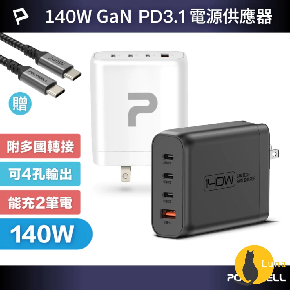 🌟POLYWELL 140W電源供應器 (內附多國轉接頭和240W快充線)🌟