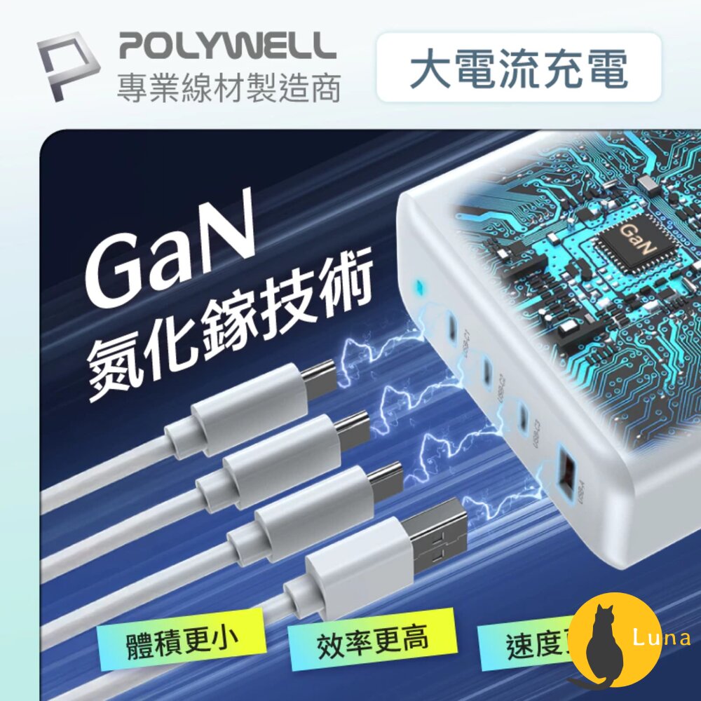 🌟POLYWELL 100W電源供應器 (內附多國轉接頭和240W快充線)🌟
