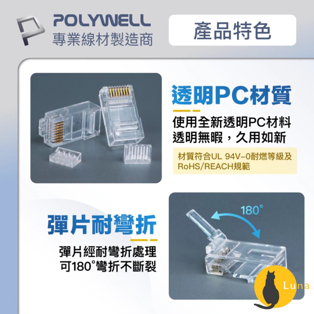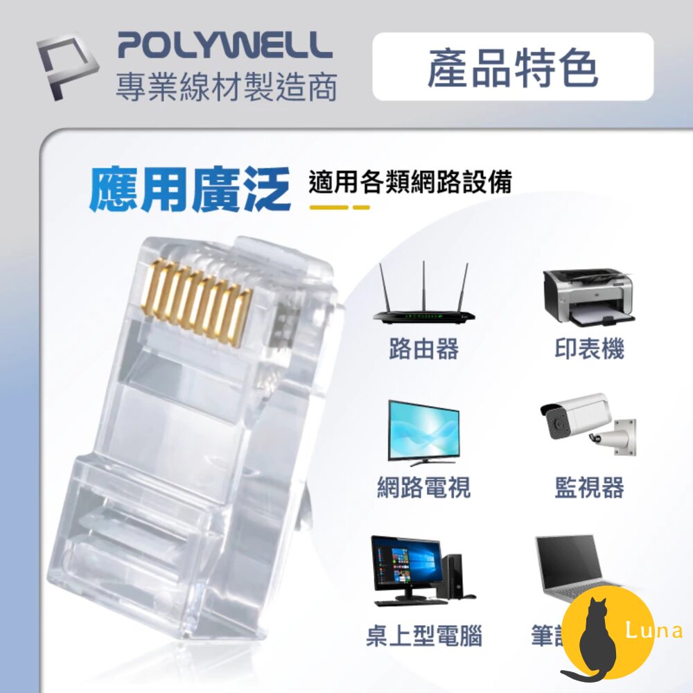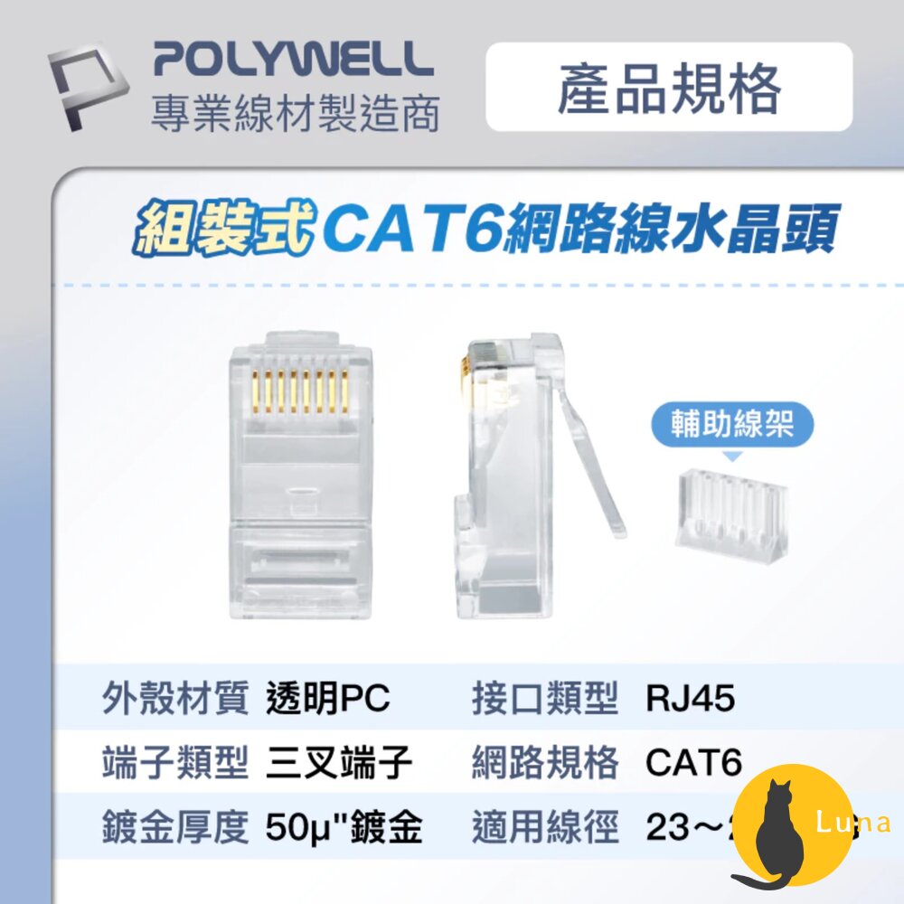 🌟POLYWELL CAT6組裝式網路線水晶頭 (10入)🌟