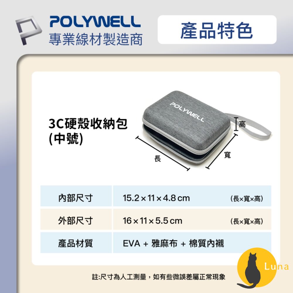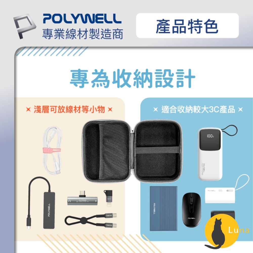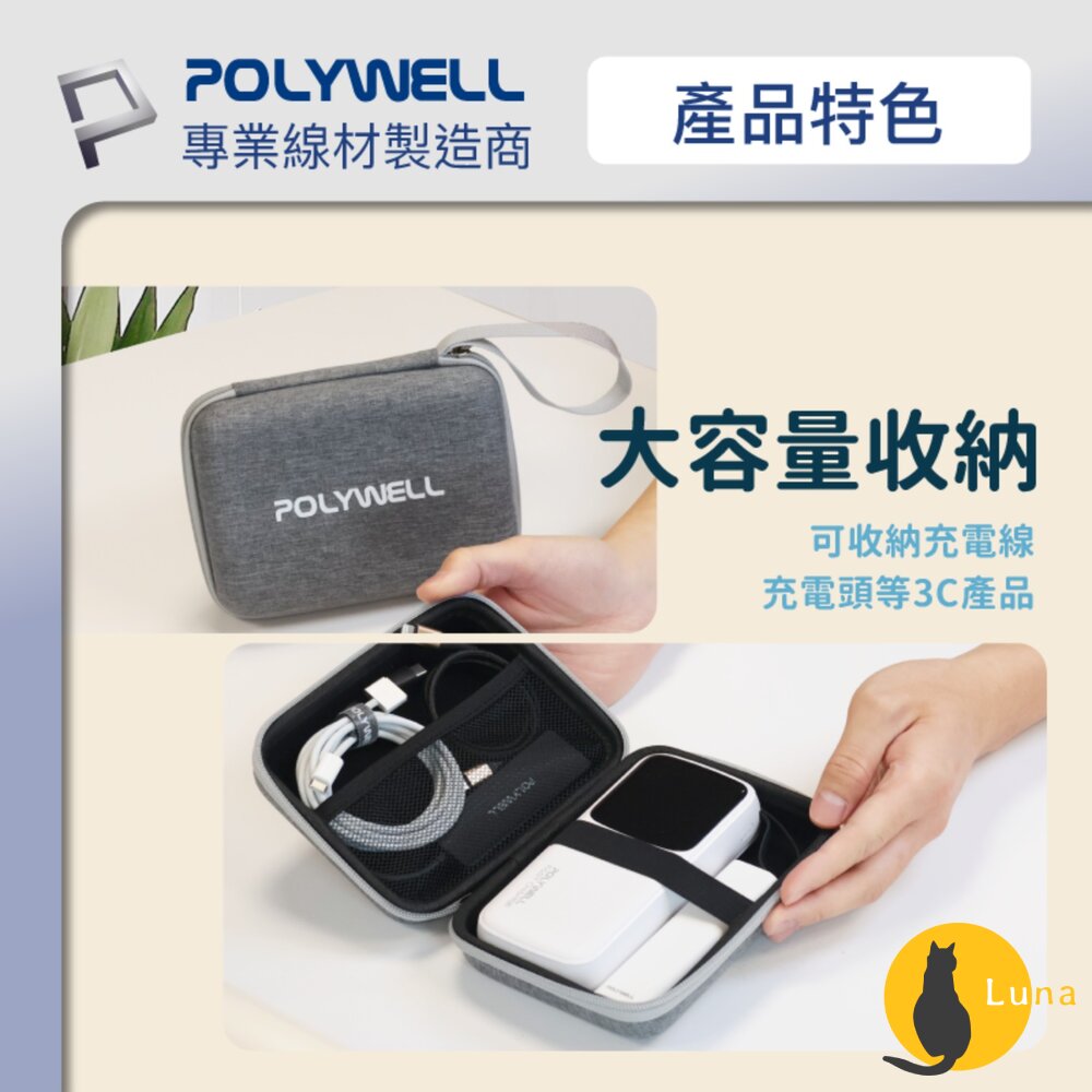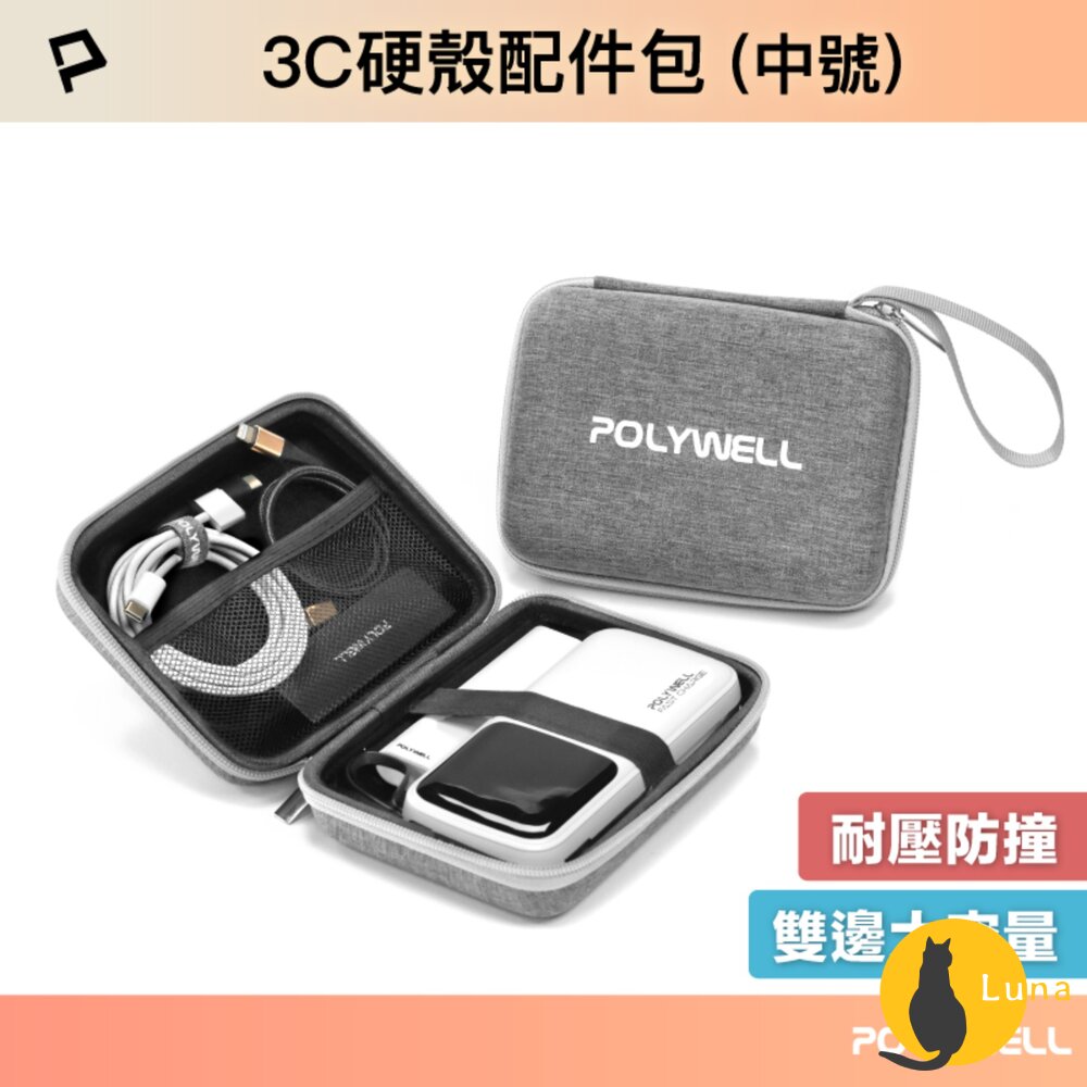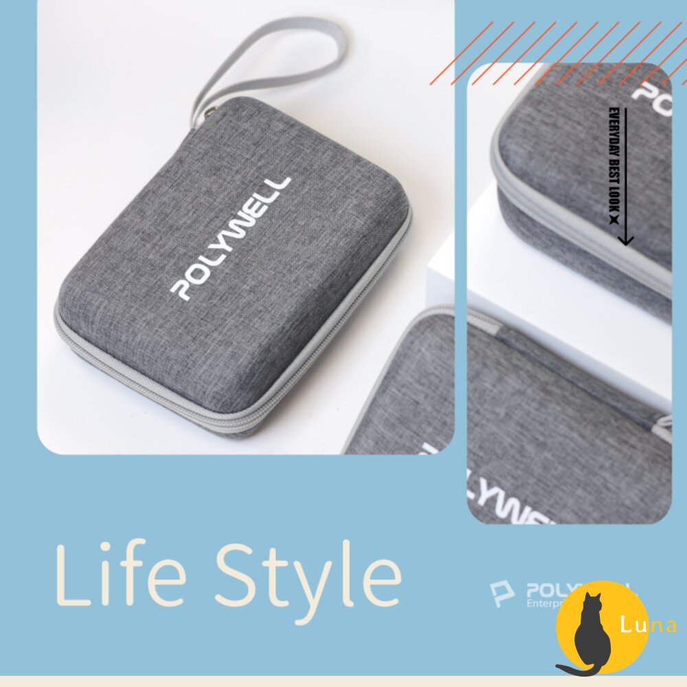 🌟POLYWELL 3C配件硬殼收納包 (灰中號)🌟