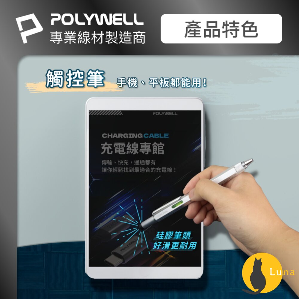 - 觸控筆:矽膠製筆頭,輕鬆觸控智慧型手機與平板