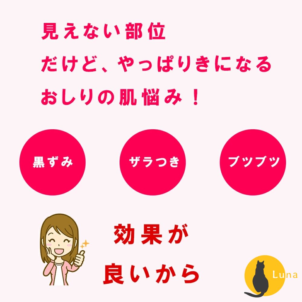 ♥ 改善多種肌膚問題: 專為臀部肌膚設計,能溫和清潔並改善暗沉、粗糙顆粒感以及粉刺問題。