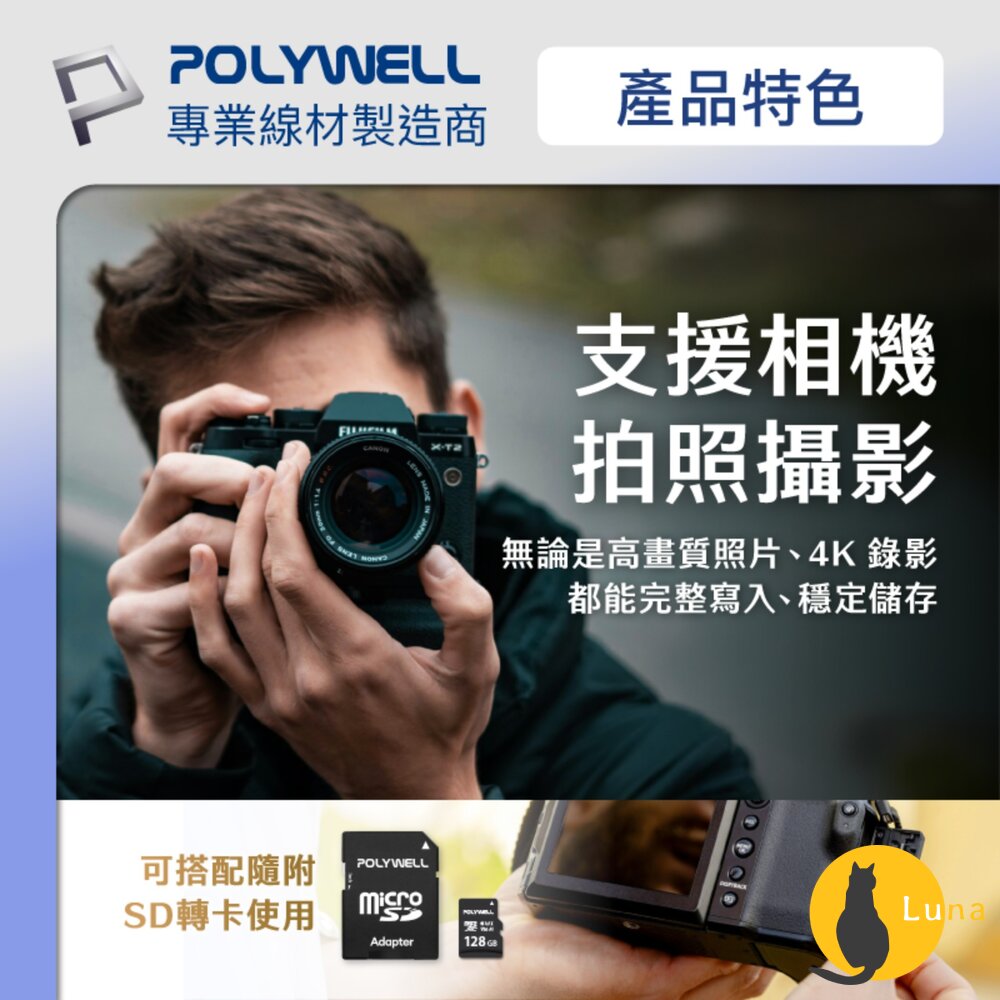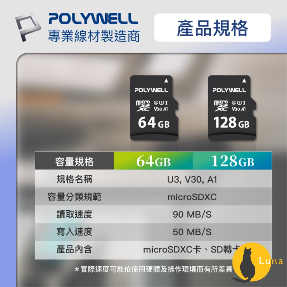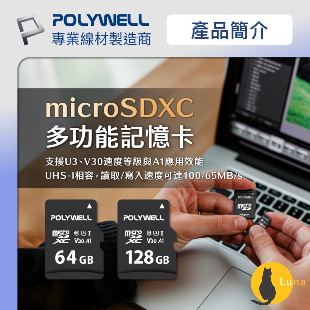 🌟Polywell microSD/TF卡 C10 UHS-I U3 A1 (附SD轉卡)🌟