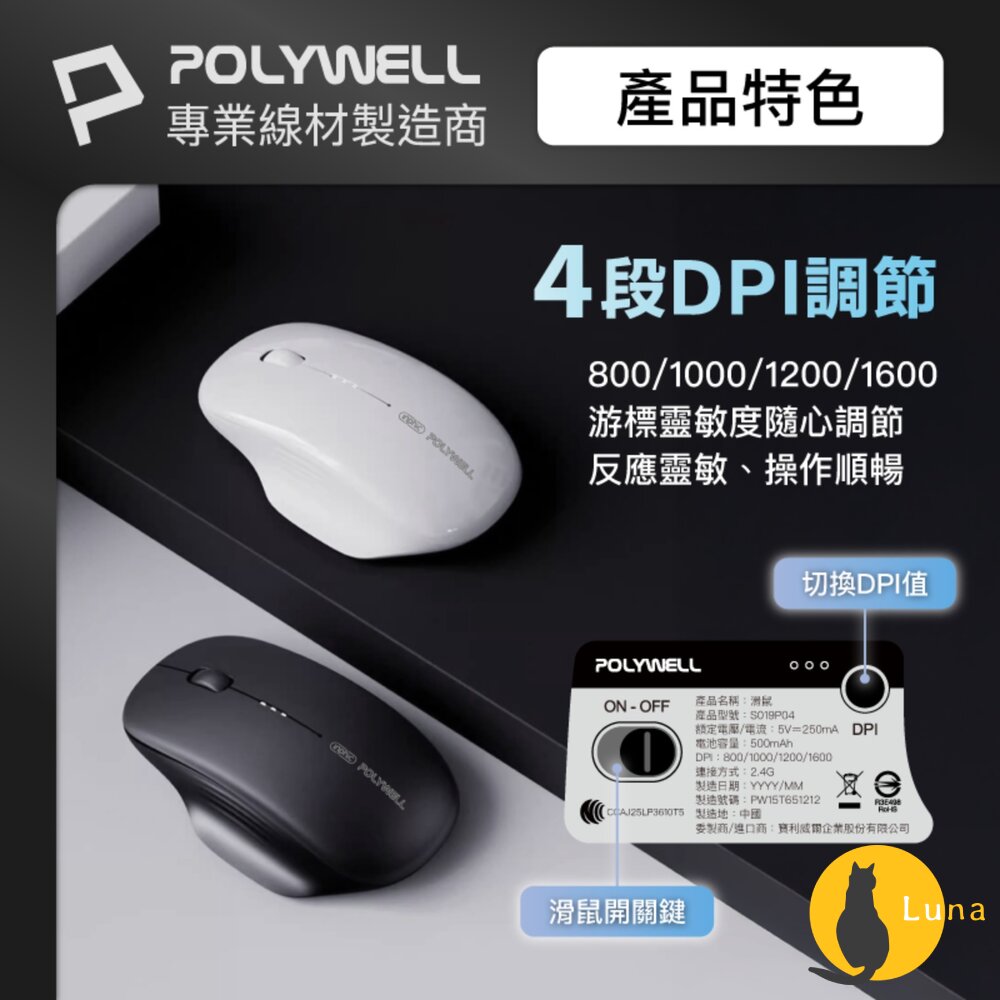 🌟POLYWELL 指托式無線靜音滑鼠 (2.4G)🌟