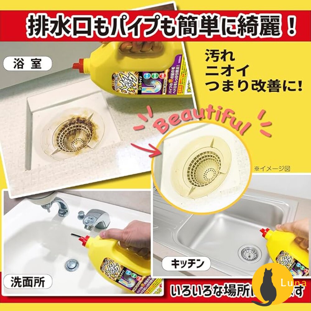 4. 使用方式:倒入後靜置 15~30 分鐘後沖水,請勿長時間放置(避免溶解物重新凝結導致堵塞)。